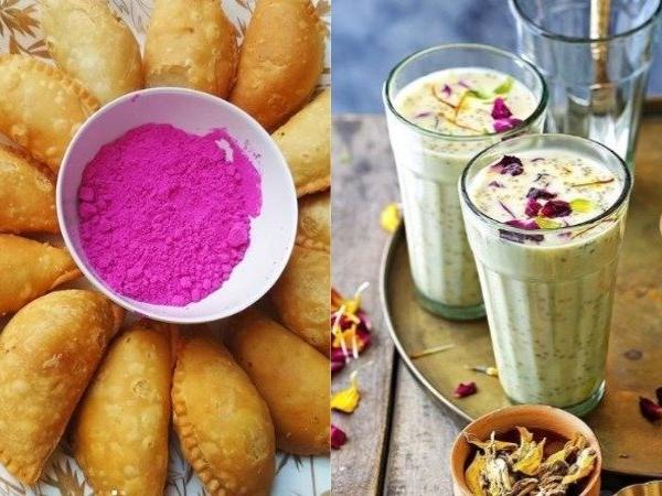 होली में बहुत से पकवान बनते हैं। इनमें कुछ चीजें पारंपरिक हैं। जैसे गुझिया, मालपुआ, शक्करपारा और नमकीनपारा आदि। ये ऐसे पकवान हैं जिन्हें होली पर ही विशेष रूप से बनाया जाता है। इतना ही नहीं कुछ खास पेय भी होली पर बहुत मायने रखते हैं। इसमें ठंडाई और रंगीन शर्बत खास तौर से होली में बनाए जाते हैं। ठंडाई दो तरह की होती है एक भांग वाली दूसरी बिना भांग वाली।
